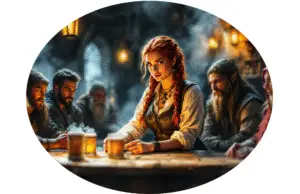 Inside, the air is thick with the scent of stale ale, blood, and secret deals. The bar is run by a mysterious figure-a forge-born spirit with a fiery temper and a penchant for gathering rumors. She’s a font of information for adventurers passing through, always willing to barter information for a favor or a story told over an unpredictable drink. But beware—the curses cling to every corner, and the drinks you take may leave more than just your stomach queasy.